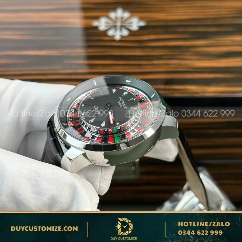 Jacob & Co Casino Roulette Replica 1 1 Watch Black Leather Strap 44mm