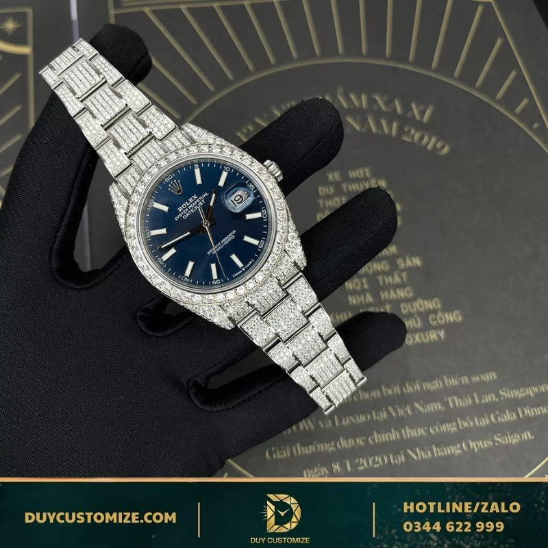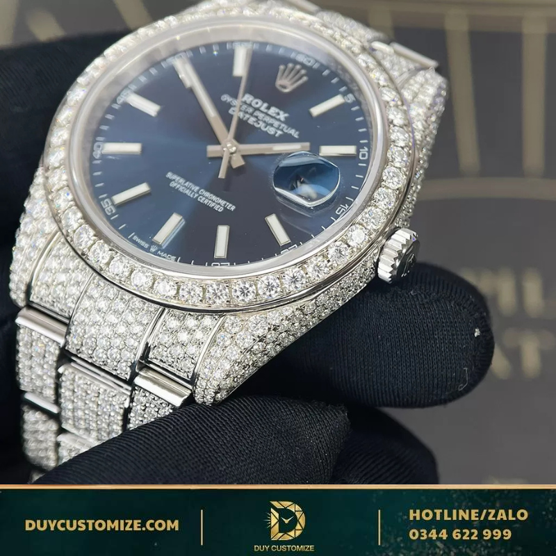 Rolex Datejust 41 Replica 1:1 Watch, Blue Dial, Luminous Hour Markers, Full Diamonds